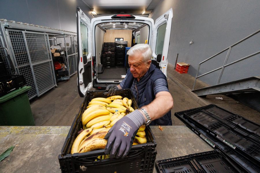 Der Laderaum des Wagens füllt sich heute recht schnell. Und dennoch ist die Ausbeute insgesamt geringer als noch vor ein paar Jahren. „Wir bekommen weniger als früher“, sagt Raimund Schäfer. „Die Händler bestellen effizienter. Sie können kleinere Einheiten ordern und bieten oft Rabattaktionen an, die dafür sorgen, dass nicht mehr so viel überproduziert wird beziehungsweise übrigbleibt. Das ist einerseits gut, da nicht mehr so viel Ware in den Müll wandert. Andererseits bleibt dann für die Tafel weniger über.“